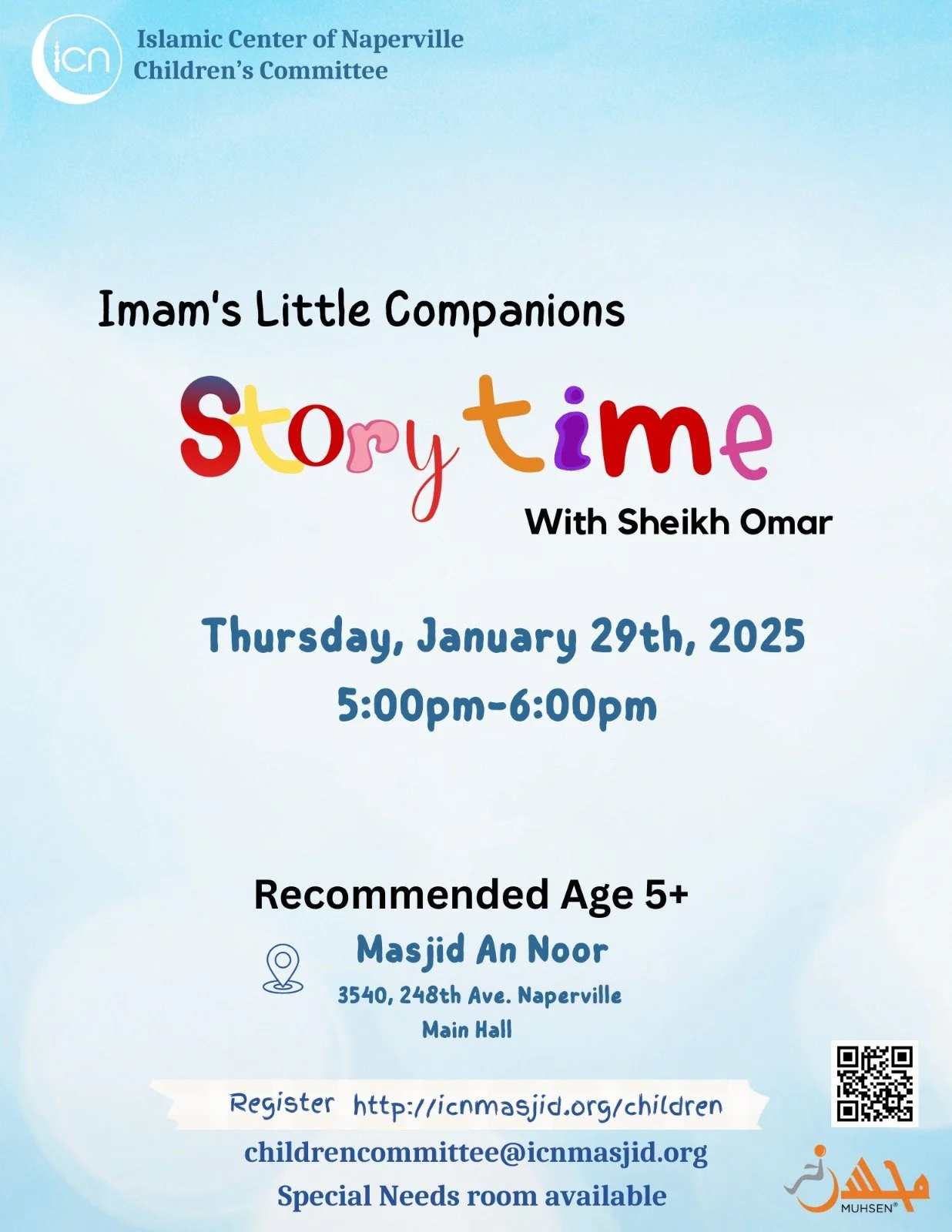 The goal of Children’s Committee is to support the spiritual, moral, and emotional development of children within the masjid environment. This committee is dedicated to creating welcoming, engaging, and meaningful experiences that help foster a lifelong love for Islam and a strong attachment to the masjid.
