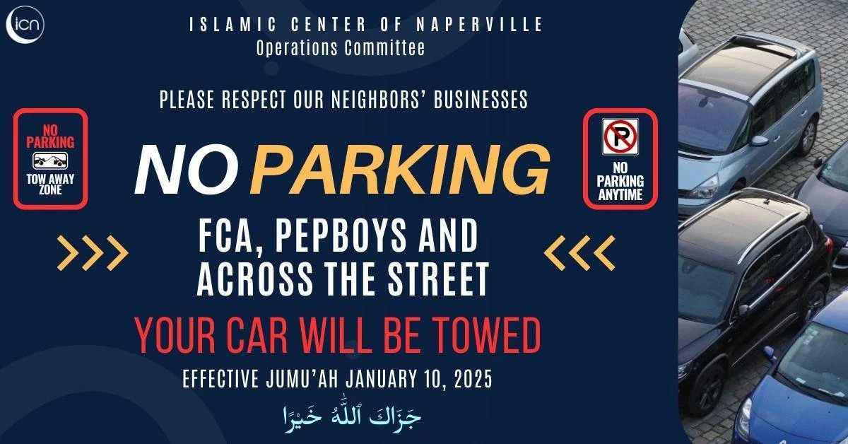Please avoid parking across the street from Masjid Al-Hilal (ICN Ogden) until we have a parking arrangement with the businesses.